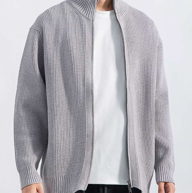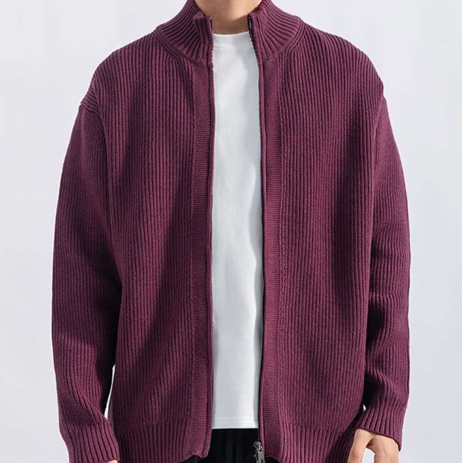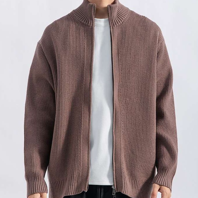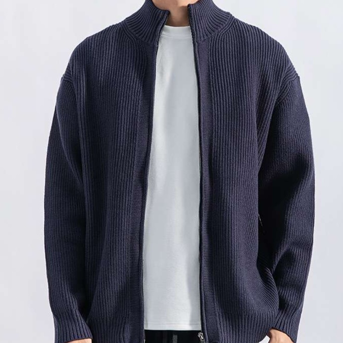 シンプルながらも洗練された立体的なリブ編みのカーディガン メンズ。