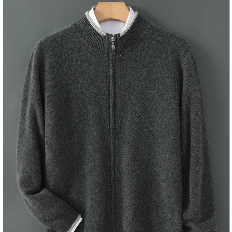 肌触りの良いウール素材を使用したジップアップカーディガン。カジュアルからビジネスシーンまで幅広く対応可能。シンプルなデザインで、重ね着にも最適。快適さとスタイルを兼ね備えた一着は、季節を問わず活躍するアイテム。おしゃれなメンズコーディネートに欠かせない、必見のカーディガンです。