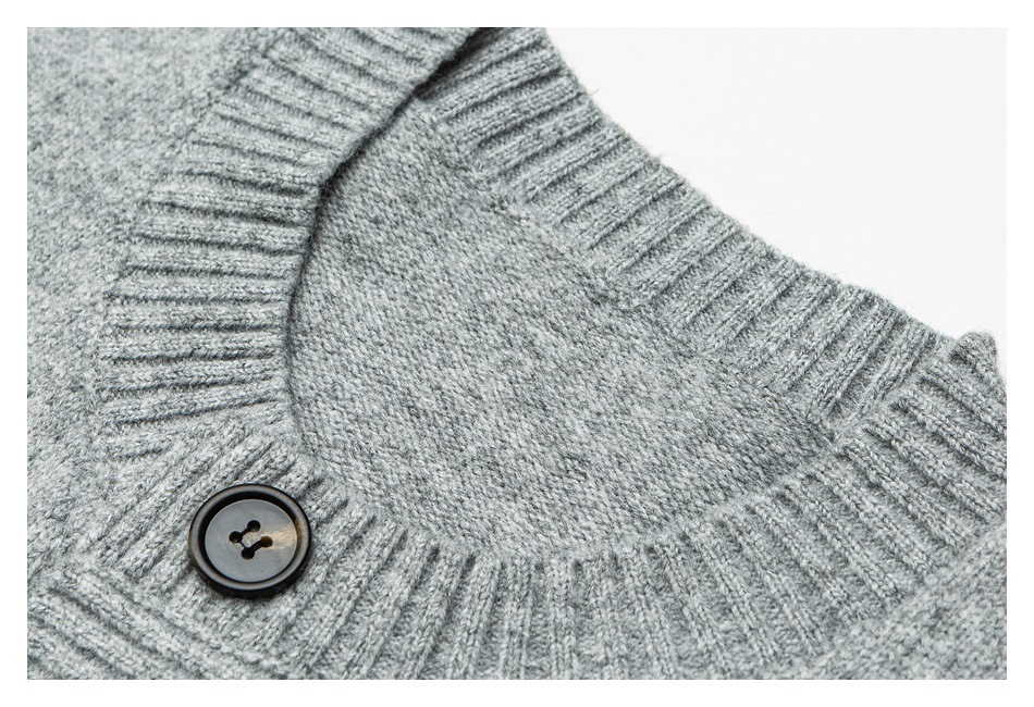 クルーネック風デザインとボタン留めが特徴的な上品な仕上がり。