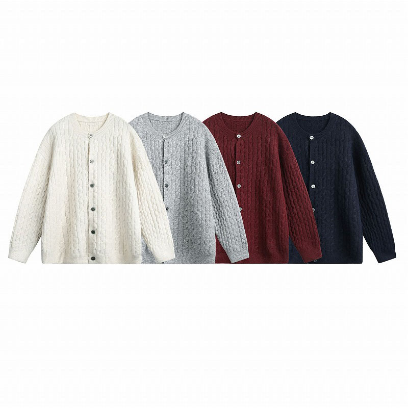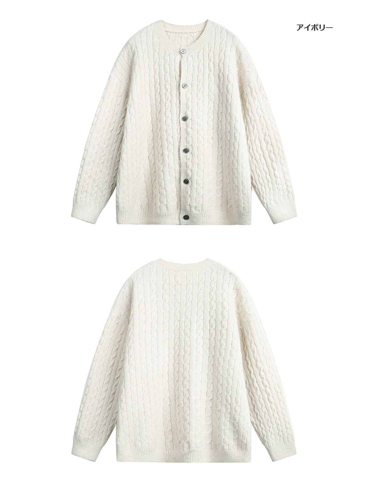 上質なケーブル編みが魅力的なメンズ カーディガン。